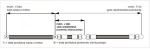 - Czas użytkowania hydraulicznego przewodu elastycznego włącznie z ewentualnym czasem przechowania hydraulicznego przewodu elastycznego nie powinien przekraczać sześciu lat.